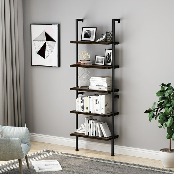 Langria Industrial 5 Tier Ladder Shelf Bookcase Wall Mounted Wood