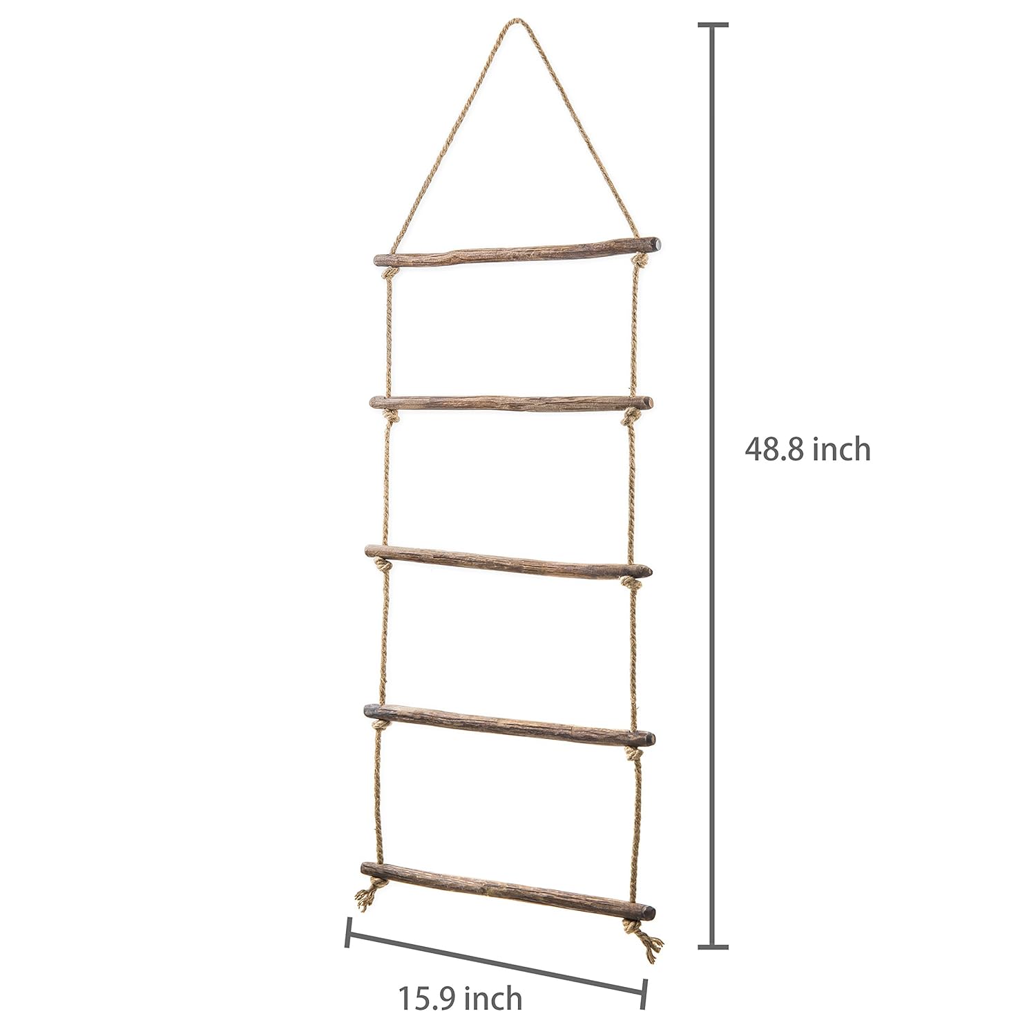 Amazon Com Mygift 4 Foot Wall Hanging Natural Wood Rope Ladder