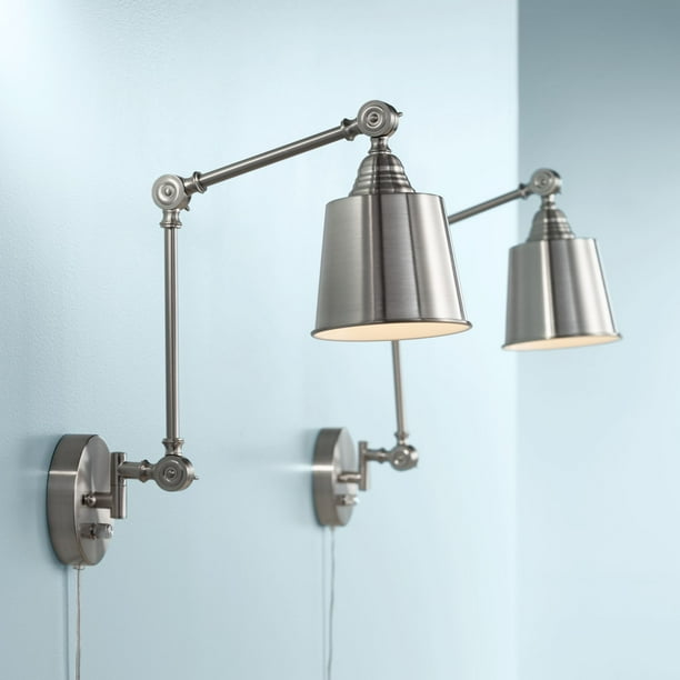 360 Lighting Modern Wall Lamps Plug In Set Of 2 Brushed Nickel For