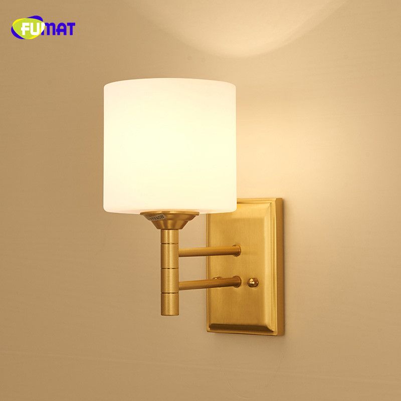 Modern Led Wall Light Glass Lampshade Copper Living Room Bedroom