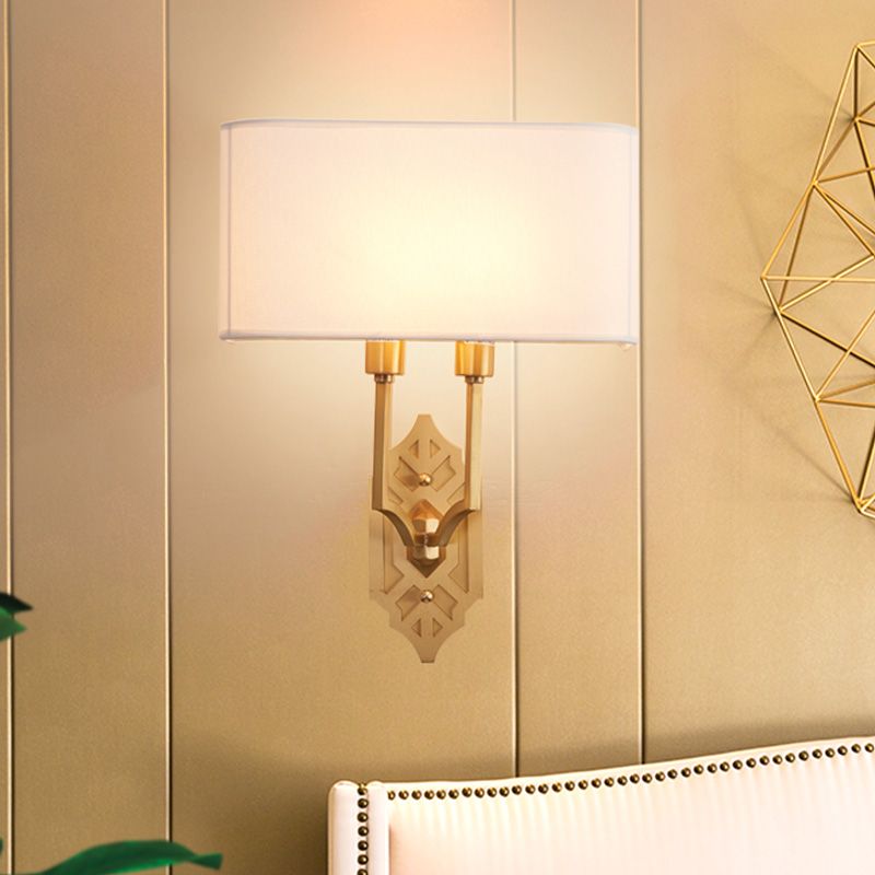 Bedroom Living Room Wall Light With White Shade Metal 2 Lights