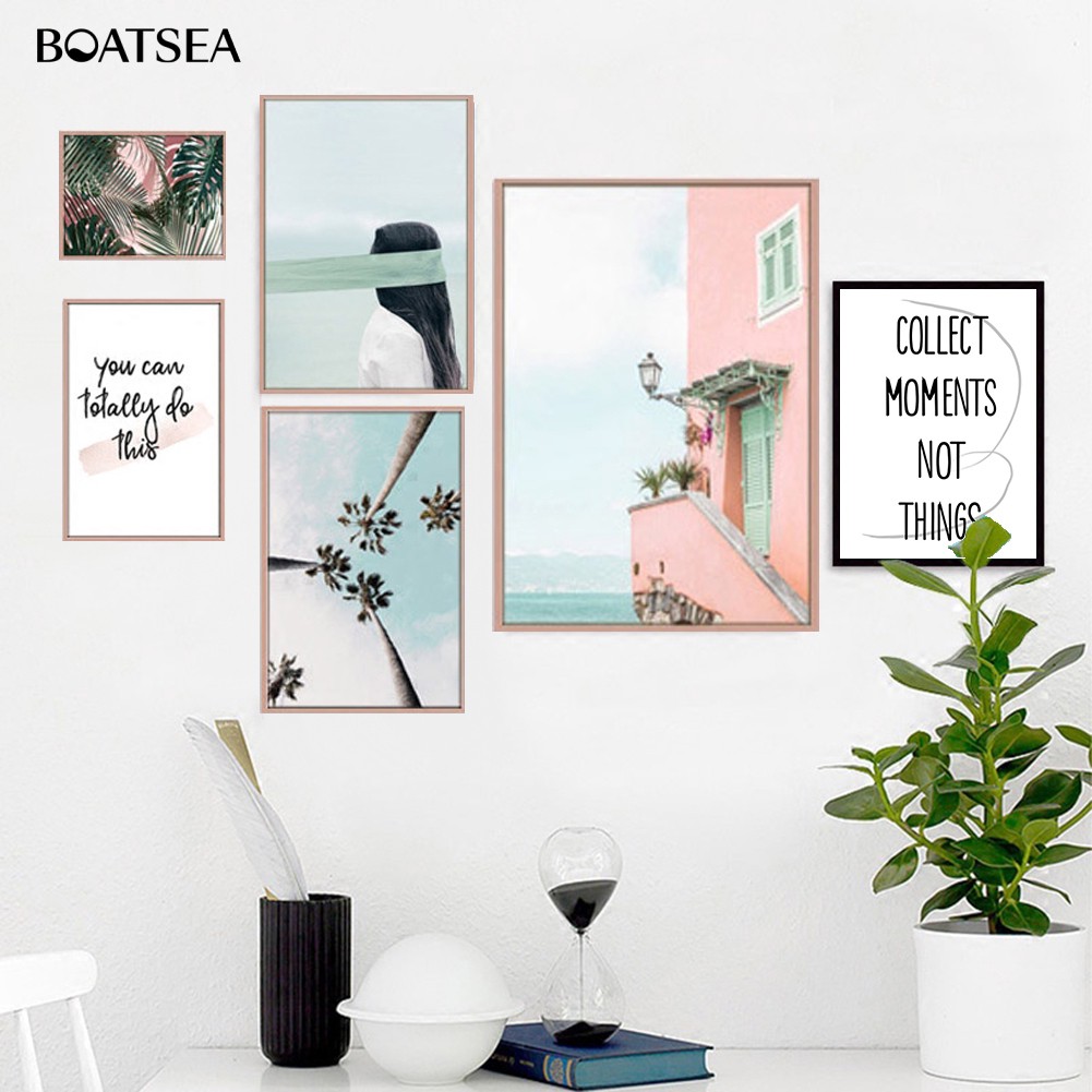 Boatsea Canvas Painting Plant Building Letters Art Poster Wall