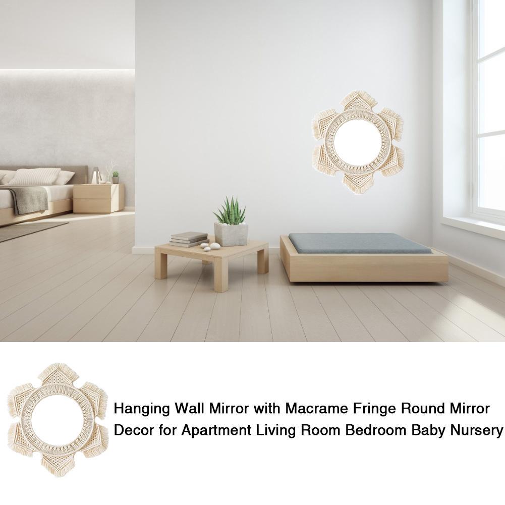 Hanging Wall Mirror Macrame Fringe Round Mirror Decor For