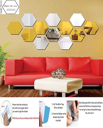 Buy Wall1ders 1store 6 Silver 6 Golden Hexagon 3d Acrylic Mirror