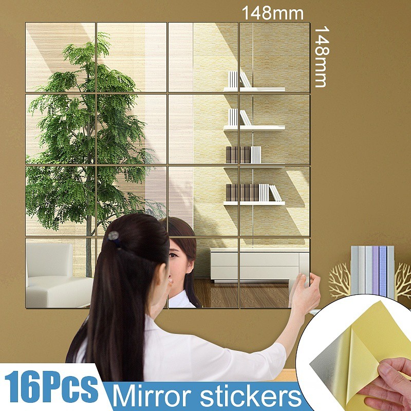 16pcs Stiker Dinding Decal Model Cermin Dengan Perekat Dapat