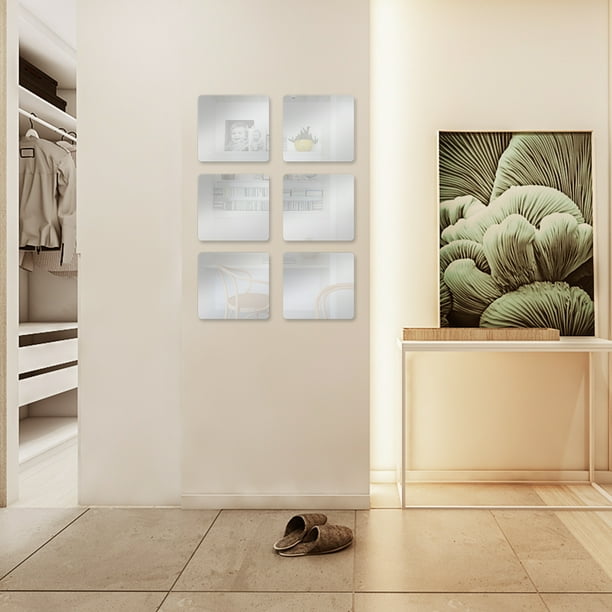 Eeekit 6pcs Removable Square Wall Mirror Stickers Flexible Self