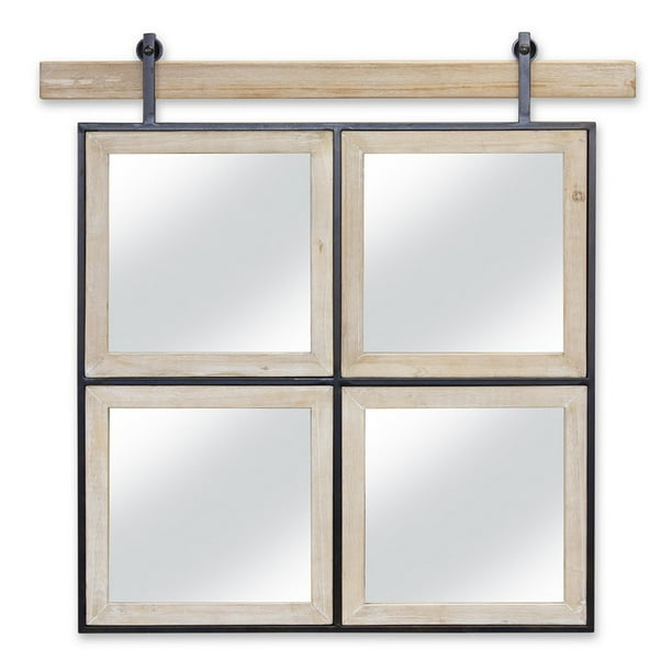 30 5 Clear And Natural Wood With Iron 4 Panels Wall Mirror
