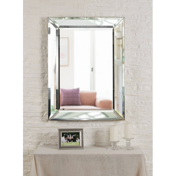 Vibe Rectangular Beveled Silver Frame Wall Mirror Walmart Com
