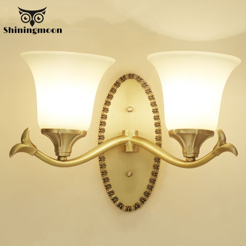 European Style Led Wall Lamp Flowers Copper Crystal Mirror Makeup