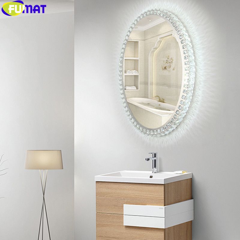 Fumat Wall Mirror With Light Crystal Led Oval Wall Hanging Toilet