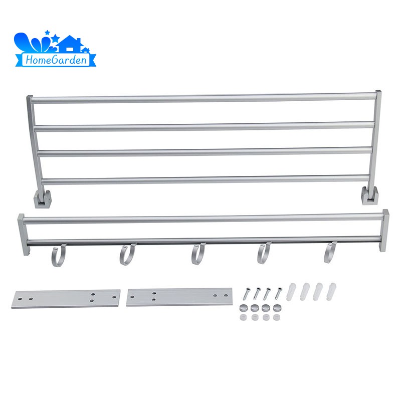 Wall Mounted Towel Rack 4 Hooks Hanger Bar Shelf Rail Holder