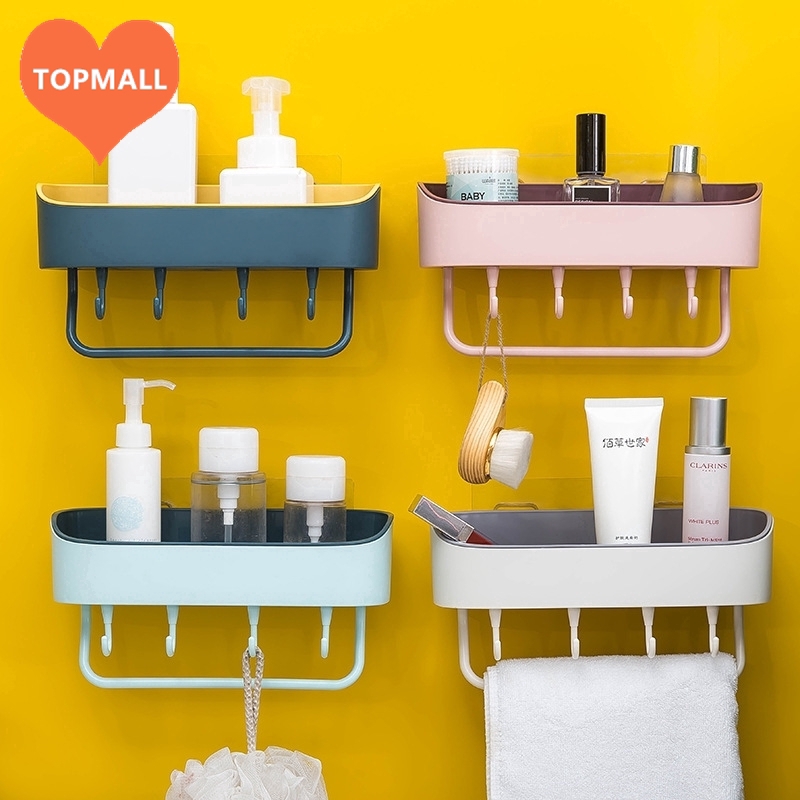 Wall Mounted Bathroom Shelf Organizer With Towel Rack Shower Kitchen Plastic Storage Shopee Indonesia