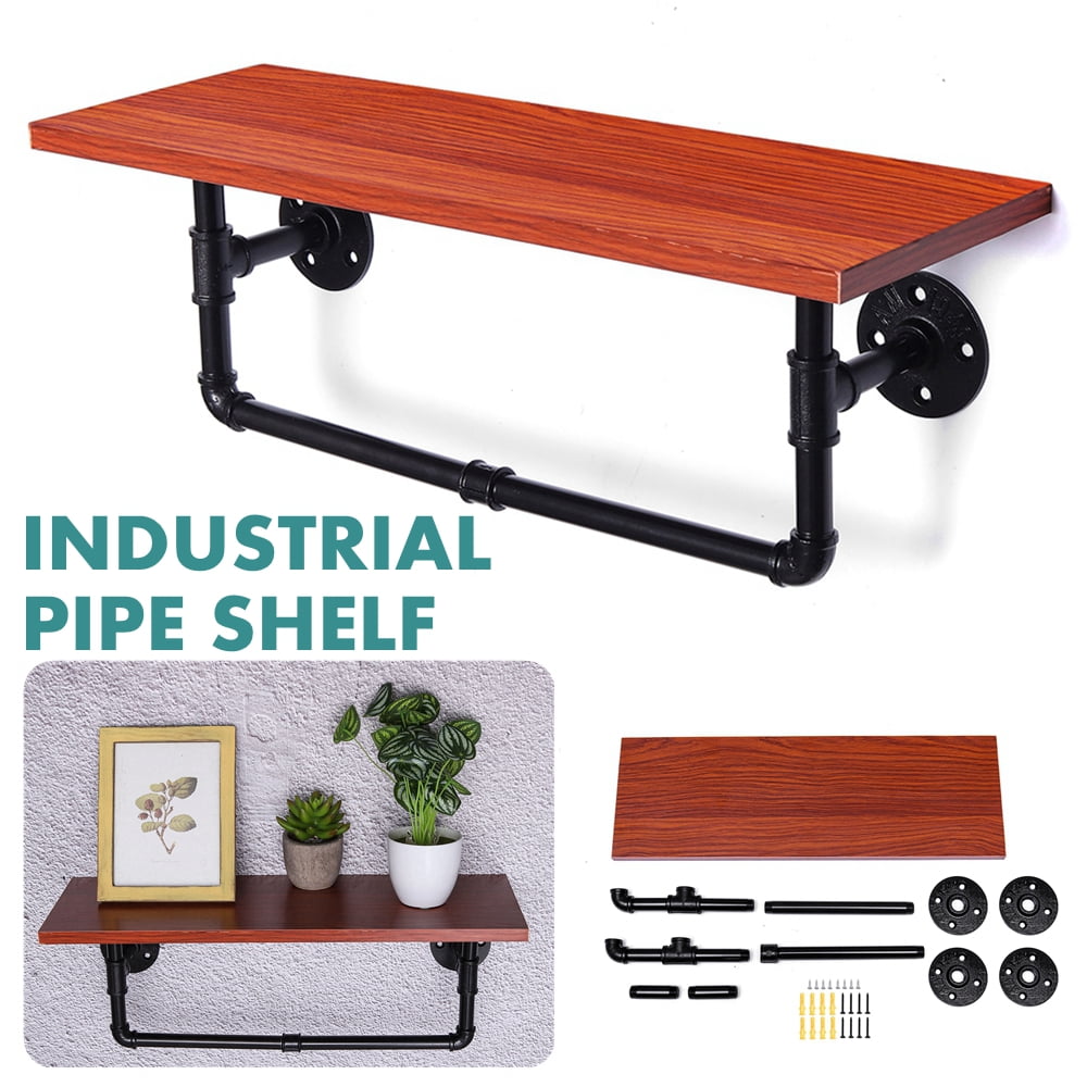 Wall Mounted Black Iron Pipe Bracket Floating Towel Shelf Hanging