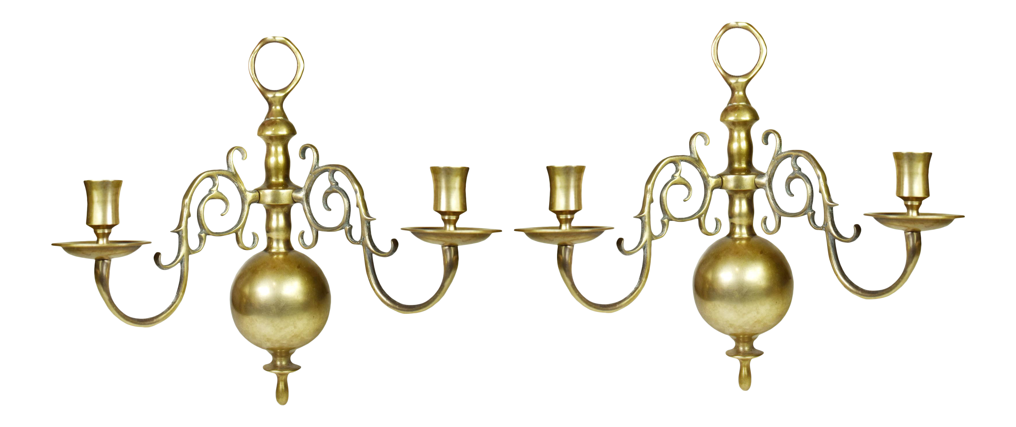 Vintage Brass Wall Sconces Wall Mounted Candle Holders Pair Brass