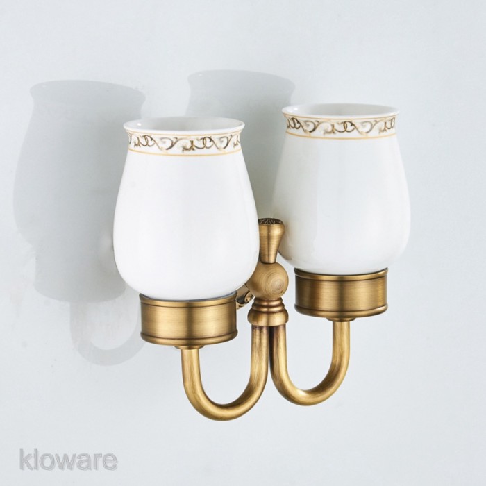 Jual Vintage Brass Batoom Toothbrush With Double Ceramic Cup Wall
