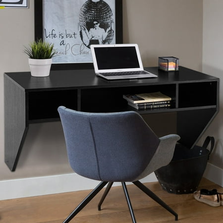 Andyes Wall Mounted Floating Computer Desk With Storage Shelves