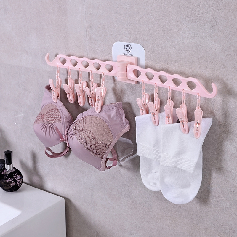 Plastic 10 Clips Foldable Clothes Rack Hanger Laundry Fold Wall
